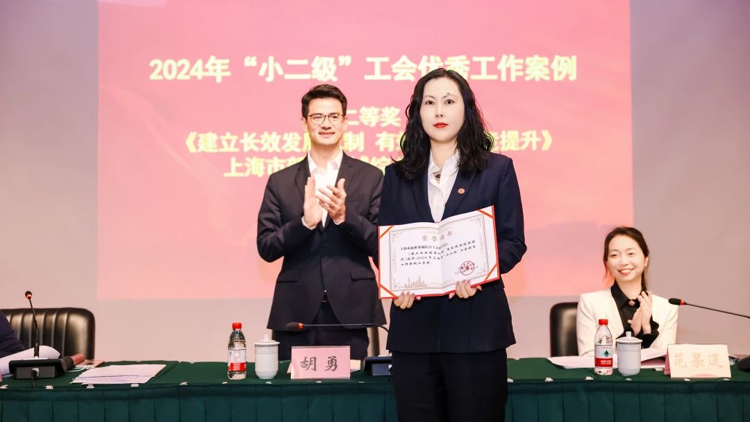 向上海市新世界城綜合工會(huì)聯(lián)合會(huì)頒授上海市“小二級(jí)”工會(huì)優(yōu)秀工作案例證書。